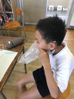 ちなみに、息を吹き込んだ袋の中がうっすらくもります。これは呼気に含まれる水滴です。