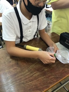 では、吐き出した呼気の成分はどうなるのでしょうか?6年生は気体検知管を用いて実験しました。