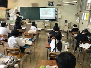 日本の気候について、学習課題を探ります。日本には「四季」があります。四季の変化が見られることは日本の気候の特色です。子どもたちは教科書や資料集の写真を見ながら、気付いたことや考えたことをワークシートに書き込み、課題を決めていきます。