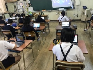 5年生の教室に行くと、子どもたちが学習者用端末内にある「パワーポイント」を開き、発表用のシートを作成していました。端末を使ってできることが増えてきました!