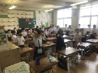 放送を使い、○×クイズを楽しみました。中には難しい問題もあって、教室の子どもたちは正解すると、大喜びでした!