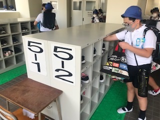 新校舎が完成し、3年生以上は新しい履き替えスペースで靴の履き替えを行います。