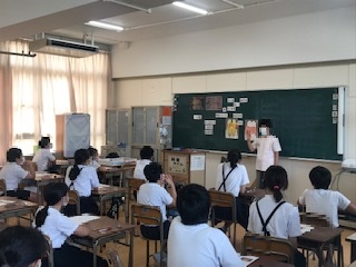 26日の始業式の後、6年生は歯と口の健康教室で歯や歯磨きについて学びました。