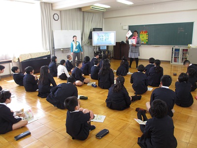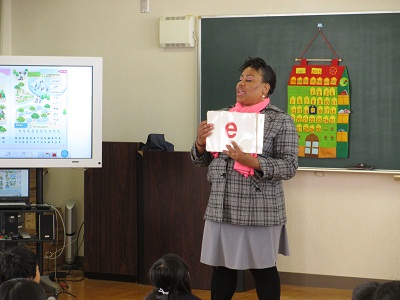 中本小学校でも、5・6年生の外国語の学習で月に1度程度、指導員も参加して学習を進めています。