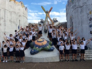 楽しかったスペイン村での活動も終わりが近づき、みんなでポーズを決めて1枚!