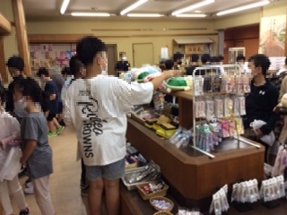 何にしようか真剣に悩んでいます。家で待っている家族の顔を思い浮かべていろいろ迷うのも、楽しい旅のひとときですね。
