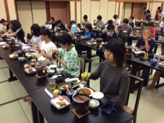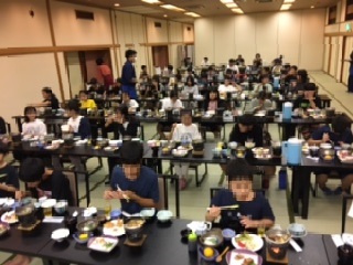 食事はみんなが同じ方を向いて食べます。もちろん黙食です。宿舎の方がきちんと考えて配置してくださっています。安心していただくことができます。