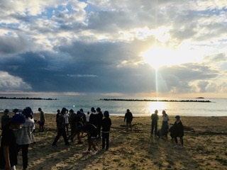 朝日がきれいな砂浜で思い出の1ページをつくっていました。