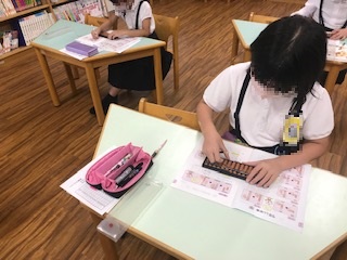 子どもたちは意欲的にそろばんを活用し、計算問題にチャレンジしていました。