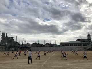 5年生はなわとびを使うため、引っかかった後の演技や隊形移動等にしっかり取り組みました。徒競走でもスタートからゴールまでの流れを確認しました。