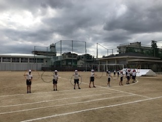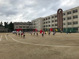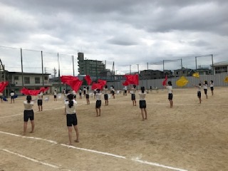 6年生は、さすがの演技が見られました。前半の体つくり運動組み合わせはリズムに合わせながらメリハリある動きになっており、また、フラッグを使った後半も大きくフラッグを動かしながらも曲に合わせて隊形移動するなど、本番がますます楽しみになる練習となりました。
