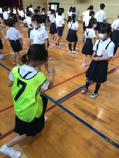 児童集会「伝言ジェスチャーゲーム」(2・4・6年生:10月14日)
