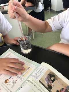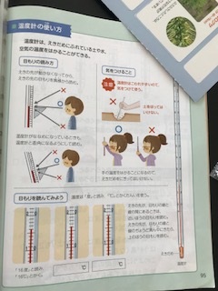 この日は日なたと日かげの温度の差を手で感じた後、温度計の使い方や目盛りの読み方について学びました。