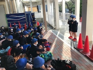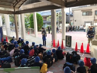 朝早い登校でしたが、保護者の方や友だちと一緒に学校に集合し、出発式を行いました。