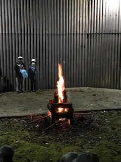 中本小のキャンプファイヤーの最初の火は何と「火の神」からいただくのです!!