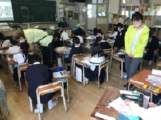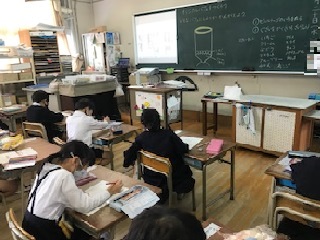 作品展に向けて、1年生の教室では立体作品制作がスタートしていました。