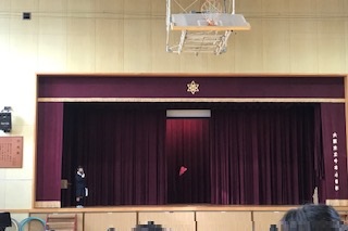この日は、舞台幕を少しだけ開けて、その間に見えるものを当てるゲームでした。簡単なものから難しいものまで、工夫されていました。
