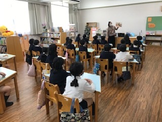 木曜日、図書館補助員の方が本校で勤務されています。低学年に割り当てた図書の時間には新しく広くなった学校図書館で読み聞かせをしてくださいます。子どもたちはとても楽しみにしているようで、集中してお話に耳を傾けていました。