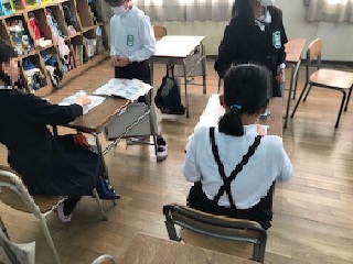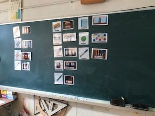 4年生の教室では、子どもたちが文房具絵カードを使って、文房具セットを作り、友だちとペアになって伝え合いをしていました。
