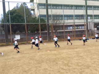 1年生も準備運動の後、久しぶりに広い運動場を思いきり走りました。