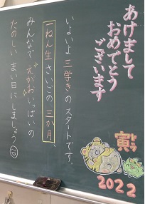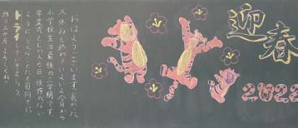12日からの3学期スタートに備えて、各教室では担任が掃除をしたり、黒板にメッセージを書いたりと、準備を進めていました。
