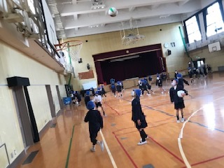 運動場が使えない本校では、講堂を開放し、15分休みと昼休みに遊べるようにしています。使用前後の手洗いや換気などの対策を講じての取組です。