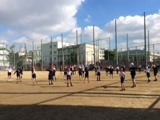 6年生は東中本公園でラジオ体操から運動をスタートしました。