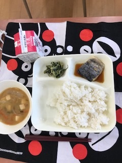 1月26日の給食は「ごはん・牛乳・さごしのしょうゆだれかけ・みそ汁・みずなの煮びたし」でした。