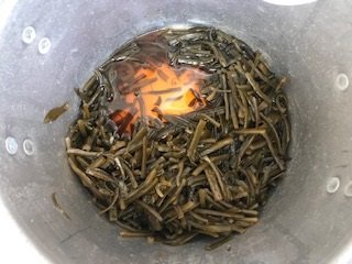 くきわかめは、乾燥品に加工するときに除かれた葉の中央を走る中肋(ちゅうろく)と呼ばれる部位を集めたものです。栄養素としては、カルシウム、ナトリウム、カリウムが多く、食物繊維も豊富です。