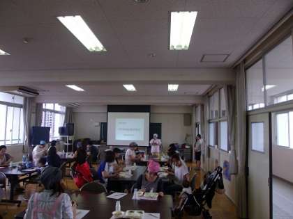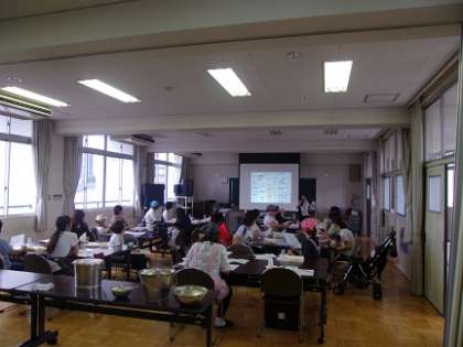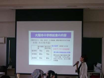 PTA行事の給食試食会がありました。保護者のみなさんが子どもの頃に食べていた給食から、献立が豊富になり、おいしい給食になっています。給食調理員さん、東成区内の栄養士の先生に、お話していただきました。
