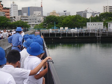 4年生の社会科の学習では、水道水がどうやって自分たちのところに届くのかを学習します。今回の社会見学で、水道水がどのような水から、どんな人たちの手で、どのようにお家に届くのか、大阪市水道局の職員の方のお話や浄水場の施設を見学して、学んできました。