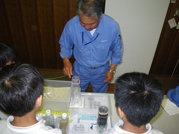 簡単な実験をしながら説明をしていただきました。にごっている水があっという間に透明になりました。日々研究を重ねているそうで、たくさんの支えがあって、生活が成り立っていることを、改めて感じることができました。