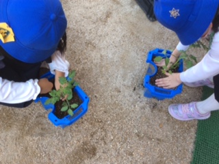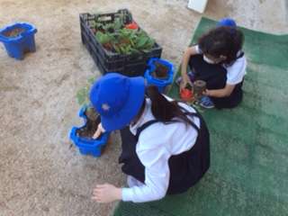 これから生活科の学習で、お世話をしたり観察したりしていきます。真っ赤な実がなるのが楽しみですね。