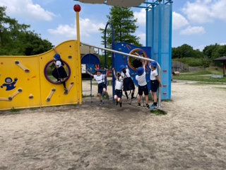 深北緑地にはたくさんの遊具があります。子ども達は目を輝かせて遊んでいました。