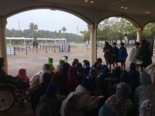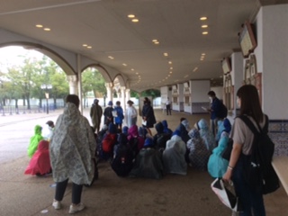 スペイン村パルケエスパーニャに到着しました。予報通り雨が降っていますが、子どもたちは元気良くグループ活動を開始しました。