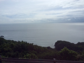 バスで海の博物館に向かう途中、パールロードから太平洋が見えました。まるい水平線に、歓声があがり、「地球が丸いって感じるわー」という声も聞こえてきました。自然の美しさを感じることもできる修学旅行です。