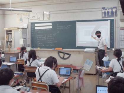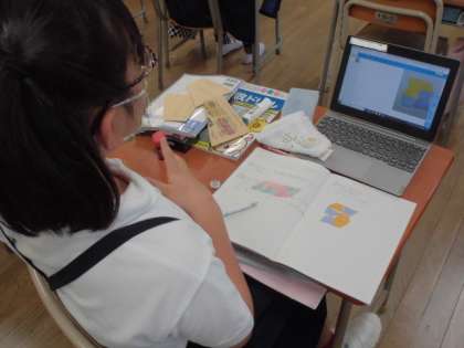 4年生は、算数で「四角形」の学習をしていました。平行四辺形や台形、ひし形などの定義を学習した後、身の回りからそれらの形を探したり、図形を敷き詰めたりして、図形への理解を深めていきます。