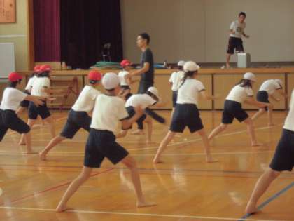 体育館では、5年生が運動会に向けて「ソーラン節」の練習をしていました。