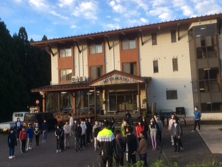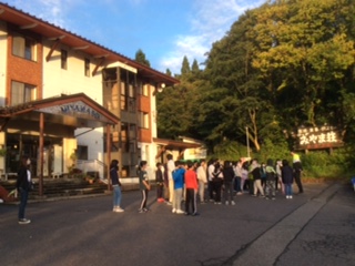 全員元気に宿舎前での朝の集いです。