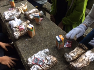 みんな2本のホットドッグをオレンジジュースといっしょにペロリとたいらげていました。後片付けも協力して行い、これで全ての活動が終了です。名残り惜しいですが、大阪に思い出話をたくさん持って帰ります。