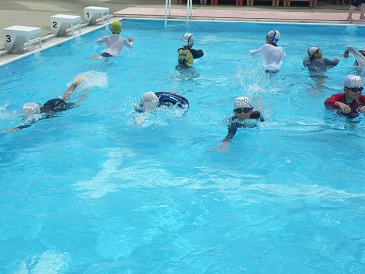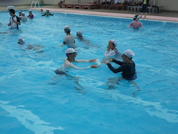 中本小学校では、3〜6年生が着衣泳を学びます。