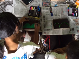 飯ごう炊飯の片付けも終わり、午後からは落ち着いて、工作です。