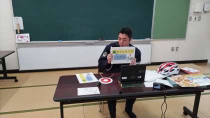 Teamsを使って別室から、低学年は2時間目に「安全な歩行の仕方について」高学年は3時間目に「安全な自転車の乗り方について」お話をしていただきました。
