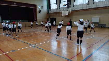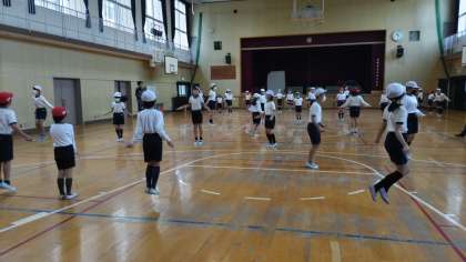 八の字跳びのタイミングをとる「ハイ!ハイ!…」の声掛けが体育館に響いていました。