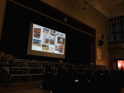 6年生担任からの「メモリーズ中本」1年生からの思い出の写真をスライドでみました。担任のあたたかいメッセージ満載です。教職員から「ひまわりの約束」の歌をプレゼント。