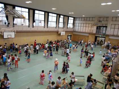 今年は雨が降ったりやんだりということもあり、講堂での開催となりましたが、とても涼しく、過ごしやすかったのではないでしょうか。最後には、きれいな花火もあがり、子ども達の笑顔いっぱいのお祭りになりました。
