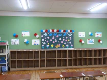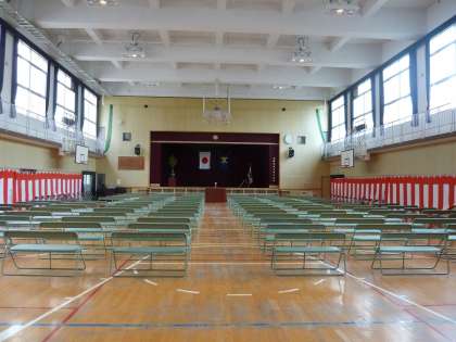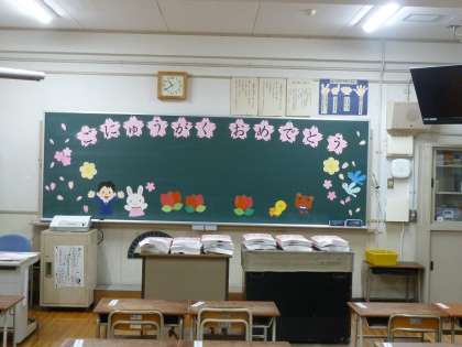 入学式に向けて講堂、教室の飾りつけ等終えました。