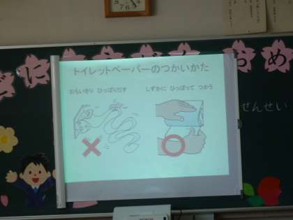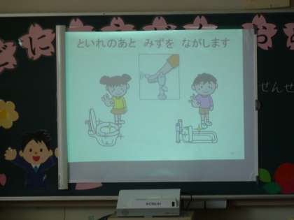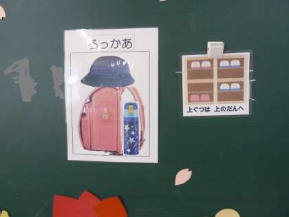 1年生は学校のトイレの使い方やくつ箱のくつの置き方、教室のロッカーに荷物の置き方など、これからの学校生活においてのルールやマナーを少しずつ学んでいました。