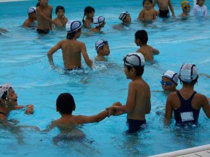 初めはお互い緊張して、照れくさそうにしていました。しかし、プール入って水慣れをしたころには、緊張もほぐれていました。大きいプールで、元気いっぱい、遊んでいました。その中で、5年生の子ども達の、園児へ接し方が、とても優しかったことが、とても印象的でした。来年度、最高学年となる準備が、着々とできているように感じました。