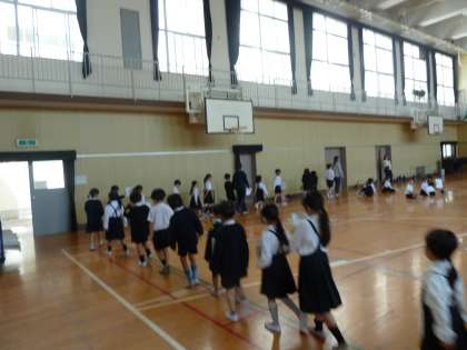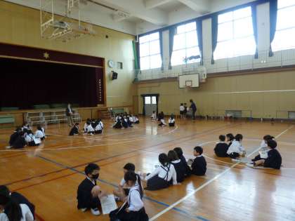 今日は、探検グループの顔合わせと2年生が1年生を連れて歩く練習をしていました。